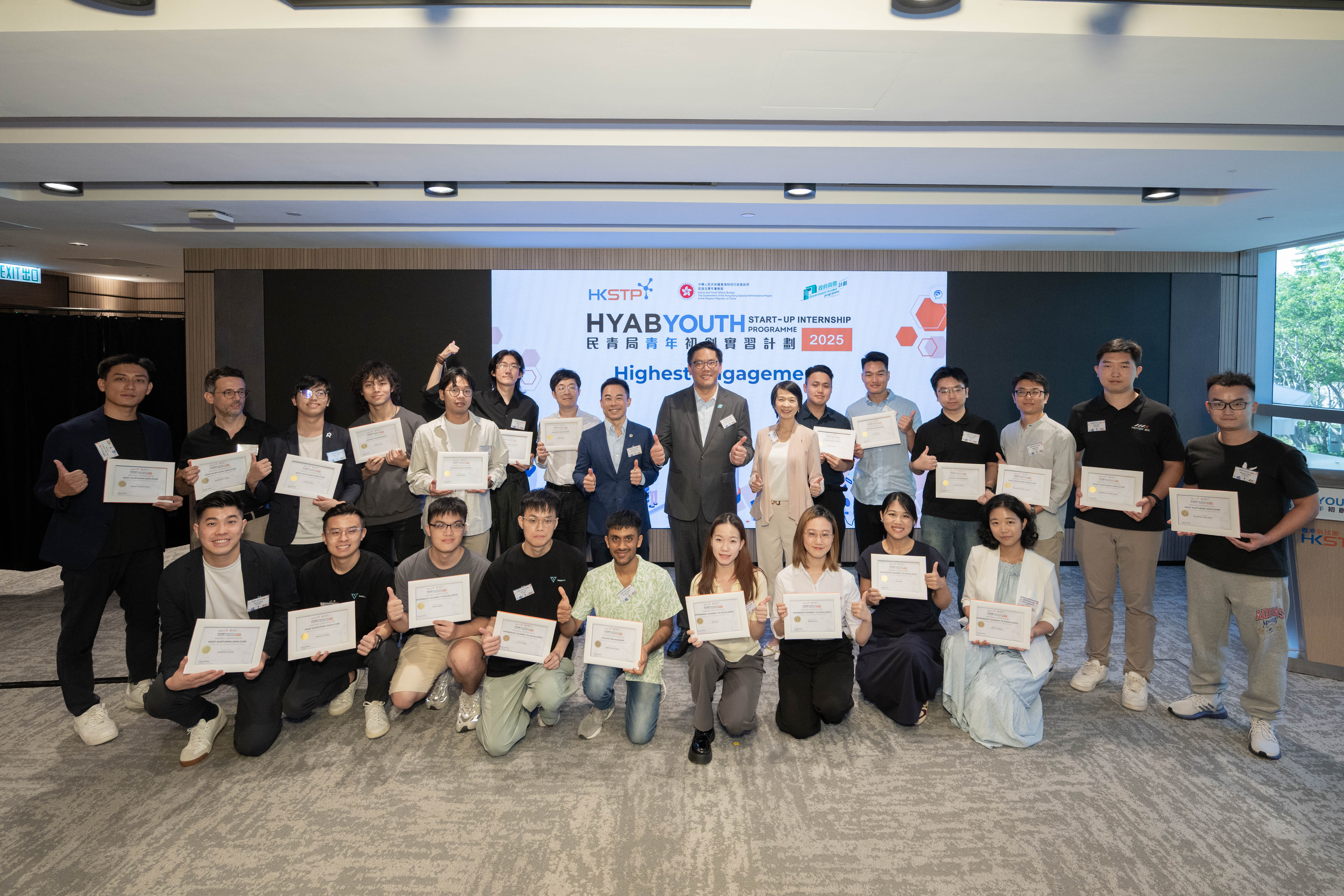 (Hong Kong, 27 August 2025) – The Hong Kong Science and Technology Parks Corporation (HKSTP), in collaboration with the Home and Youth Affairs Bureau (HYAB), has successfully concluded the third year of the HYAB Youth Start-up Internship Programme (YSIP 2025), which saw exceptional demand with approximately 750 student applicants competing for 100 internship positions. This surge of interest was driven by growing industry support, as a record 196 startups created nearly 250 internship openings in January. The overwhelming response reflects the diversity of participating companies and the growing enthusiasm among youth to pursue innovation and technology-driven careers, fostering the programme’s positive impact.