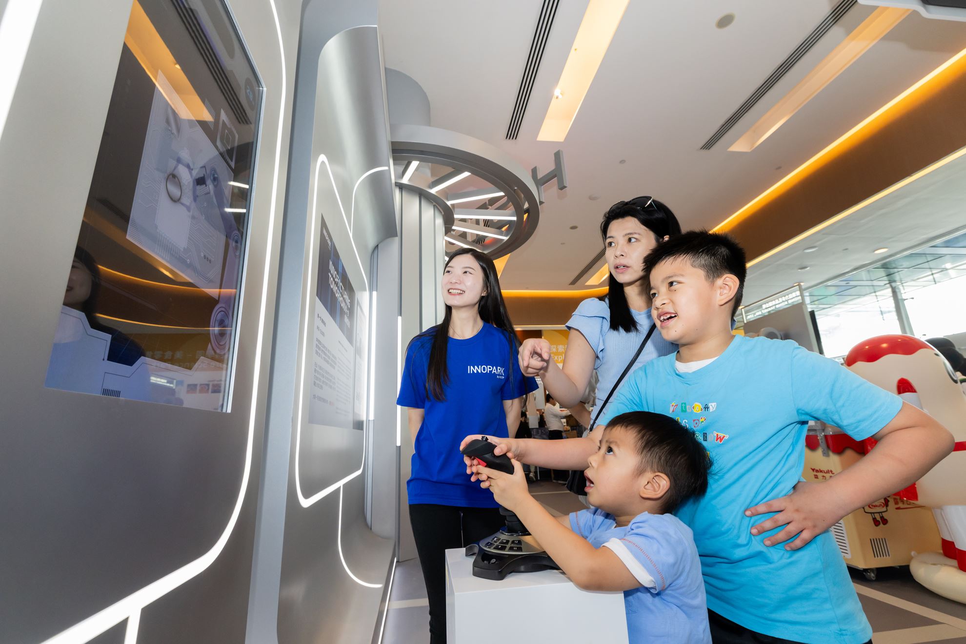 今年展区的焦点包括巨型裸眼3D影片《3D未来之旅》,以震撼视觉效果立体呈现大埔、元朗及将军澳三大创新园的智能制造过程。参观者无需配戴任何装置,即可感受身临其境的智能工厂体验。同场亦设有两个互动体验区,参加者可亲身模拟操控机械臂组装电路板,又或是利用肢体动作进行指挥的体感游戏,挑战速度与精准度。