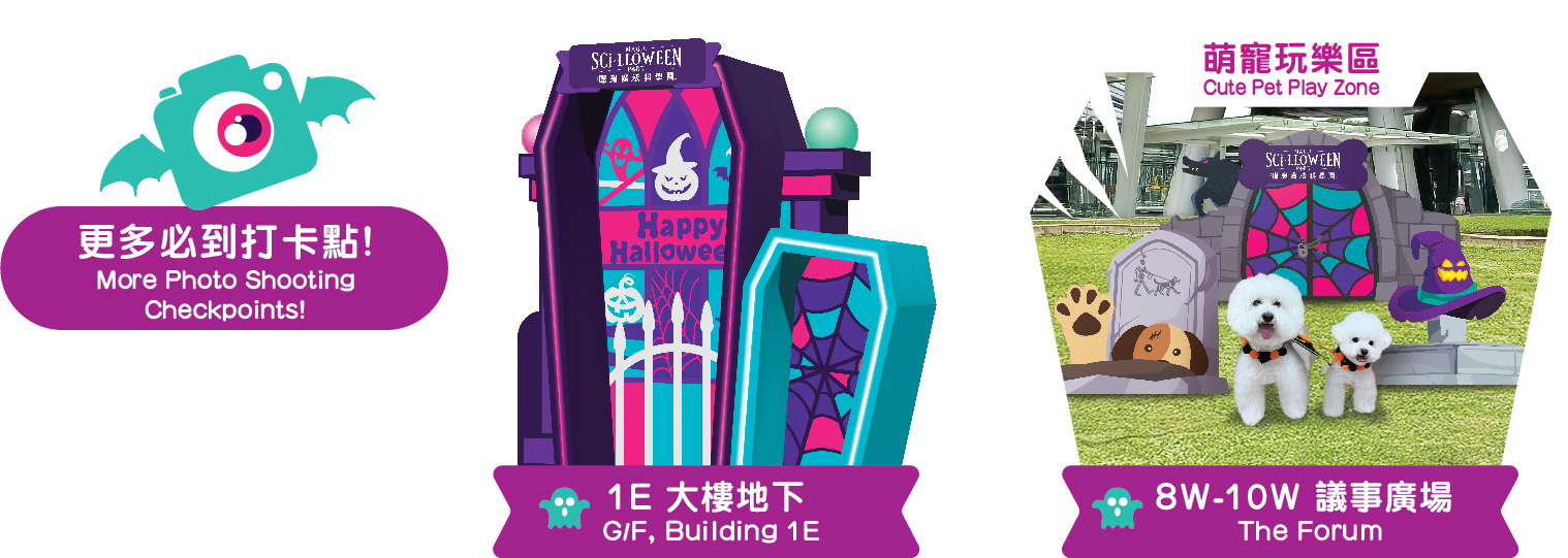 于 10 月 25 至 26 及 31 日,持有有效游戏卡的顾客可以体验 4 个魔法学园主题游戏!其中游戏「魔咒现形术」让你用隐形墨水写出魔咒、「怪异糖果降」更让你亲自夹出万圣节糖果!不要错过这个全家人共度万圣节的互动机会,尽情同哗鬼魔法师在科学园玩游戏啦!