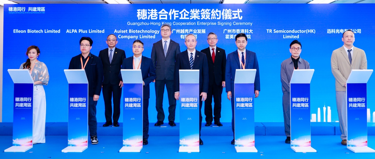 (香港,2026年3月18日) — 香港科技园公司(科技园公司)昨日在「『穗港同行 共建湾区』科技创新与产业创新深度融合发展专题活动」上,与广州越秀集团股份有限公司(越秀集团)及香港科技大学(科大)共同签署合作备忘录,标志「穗港联动科创平台」(平台)正式成立。三方将透过平台,推动科技创新、成果转化、产业协同及资本联动,携手打造粤港澳大湾区科技与产业创新深度融合示范区,对接国家十五五规划,为国家高质量发展贡献穗港力量。
