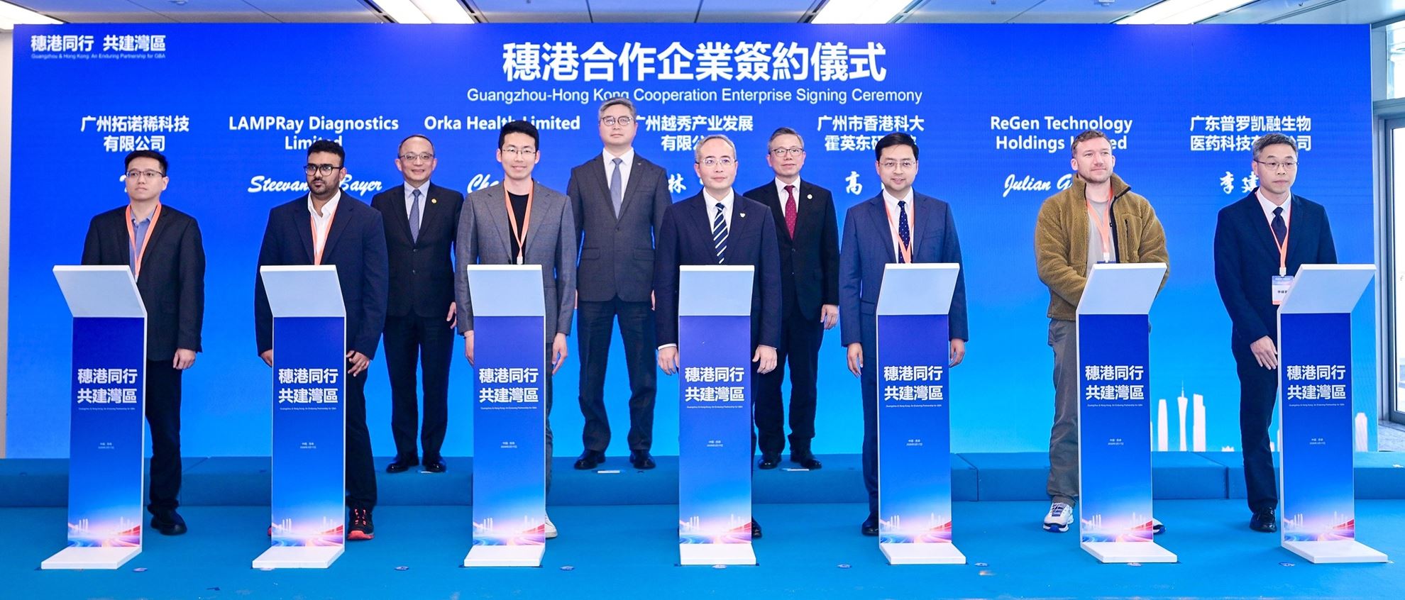 (香港,2026年3月18日) — 香港科技園公司(科技園公司)昨日在「『穗港同行 共建灣區』科技創新與產業創新深度融合發展專題活動」上,與廣州越秀集團股份有限公司(越秀集團)及香港科技大學(科大)共同簽署合作備忘錄,標誌「穗港聯動科創平台」(平台)正式成立。三方將透過平台,推動科技創新、成果轉化、產業協同及資本聯動,攜手打造粵港澳大灣區科技與產業創新深度融合示範區,對接國家十五五規劃,為國家高質量發展貢獻穗港力量。