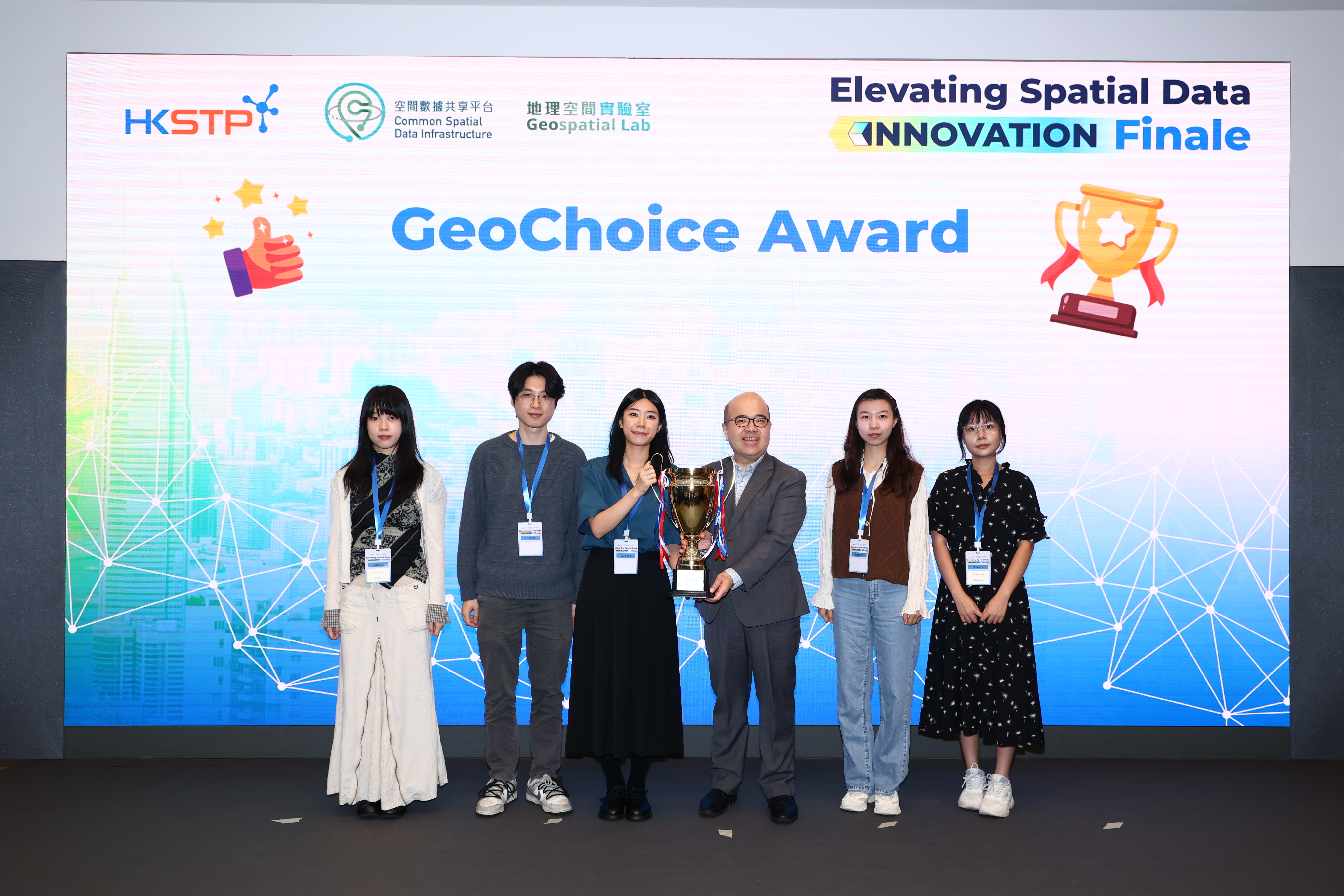 決賽現場設有「 我最喜愛空間數據應用項目」 獎項---「 GeoChoice Award」。 四強隊伍在決賽中全力以赴, 展示各自的空間數據創新項目。 經過激烈競逐, HabiPet 憑藉其為寵物主人提供一站式平台, 獲得由現場參與者投票選出的「 GeoChoice Award」 。
